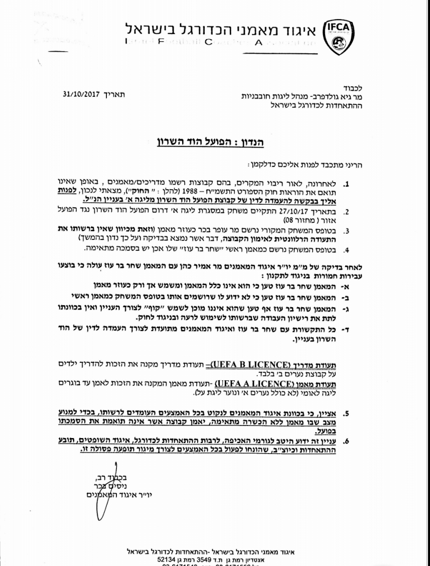 תגובתו של אמיר כהן, סגן יו"ר ארגון המאמנים:" מדובר בתופעה חמורה של שימוש לרעה בתעודות מאמן על מנת "לעקוף" את המערכת ולתת לאדם ללא סמכות לאמן שלא כחוק. אנו שוכחים אלמנט מאוד חשוב בעבירות מסוג זה, חלילה שחקן נפצע והודרך על ידי אדם ללא סמכות חברת הביטוח לא תישא באחריות כפי שאדם נוהג ללא רישיון ברכב עם טסט וביטוח וזאת בנוסף לעבירות לחוק הספורט, עבירות על תקנון ההתאחדות ופגיעה במעמד המאמן. לא ניתן יד לשימוש ב"קופים" בענף מאמן כדורגל זה לא שוק פרוץ וכל אדם יעבוד בהתאם להסמכה שניתנה לו. רוצה לאמן? אהלן וסהלן ...לך ללמוד, תסיים את הלימודים, תקבל את הדיפלומה וברוך הבא"