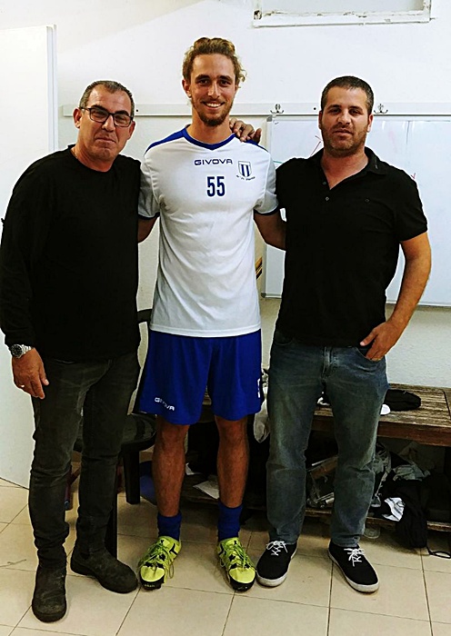 זיו עילם וסוכנו יחד עם נציג שמשון ת"א לאחר החתימה על החוזה.