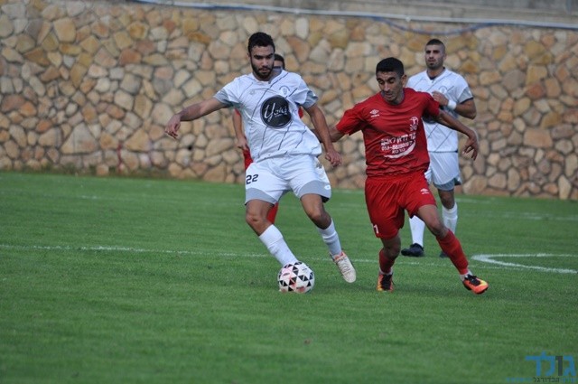 קרב אווירי היה במשחק הצמרת... מנאר דראושה מול דין נאפסו המחליף.. צילום: חגג רחאל.