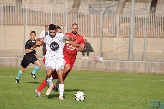 איימן חטיב מכפר כנא. נלחם על כל כדור. עומר כהן מתלונן...צילום: חגג רחאל.