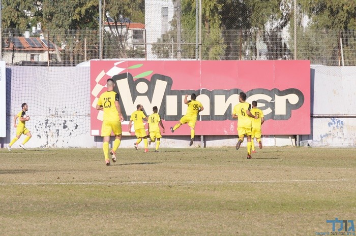 עידן סרור חוגג לאחר הבעיטת אומן. האם הוא השחקן הכי חכם בליגה א? צילום: איתן ידגר.