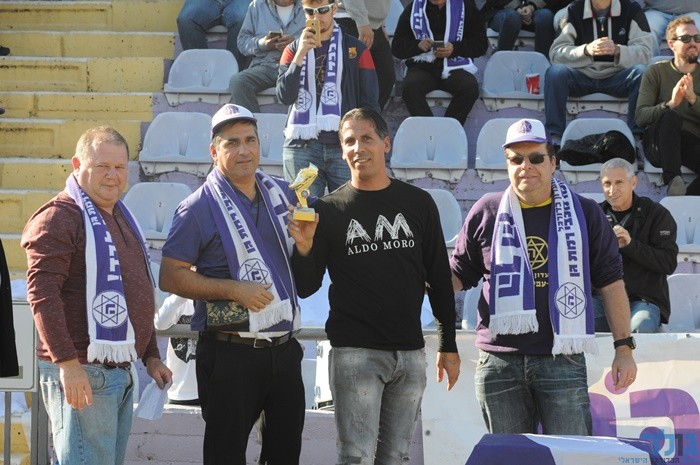יובל פילוס ואוהדי הכח. שאפו ענק לאוהדים המסורים שזוכרים ובעיקר מכבדים את העבר. צילום: איתן ידגר.