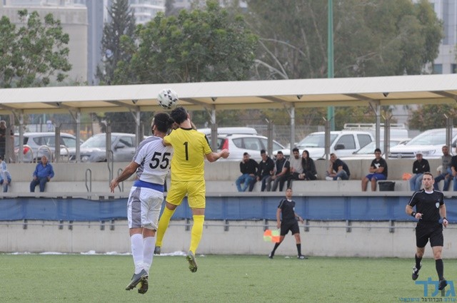 אדיר חליפה מנסה לקחת כדור גובה מול סולי צמח (איתן ידגר)
