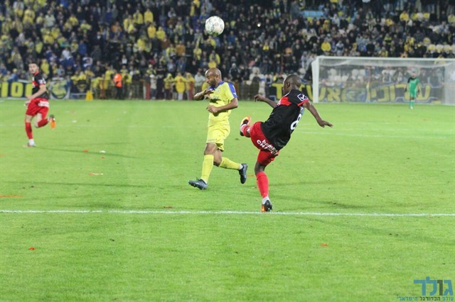 צ'קול מרחיק את הכדור מהאזור המסוכן, ברוך דגו היה הבולט בשורות עירוני אשדוד (מוטי קדוש)