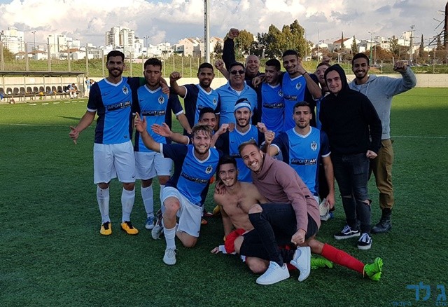 שחקני מחנה יהודה חוגגים ניצחון גדול על בקעת הירדן.