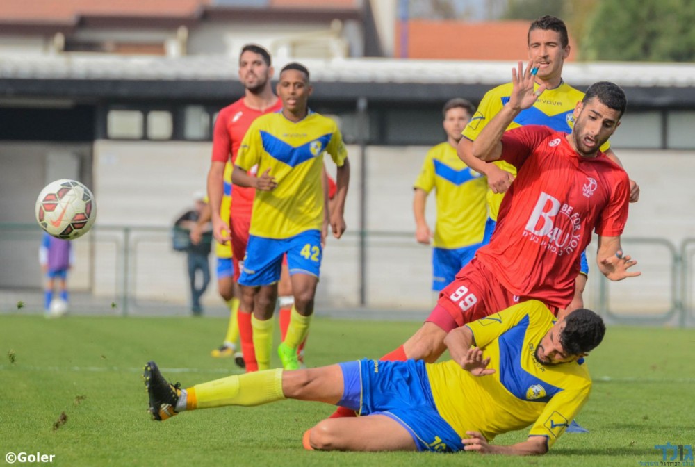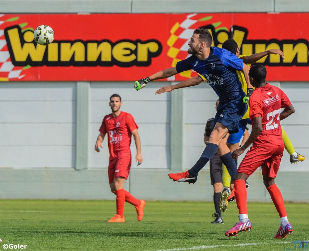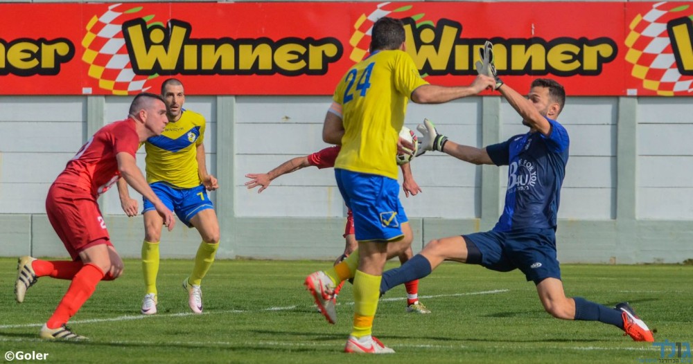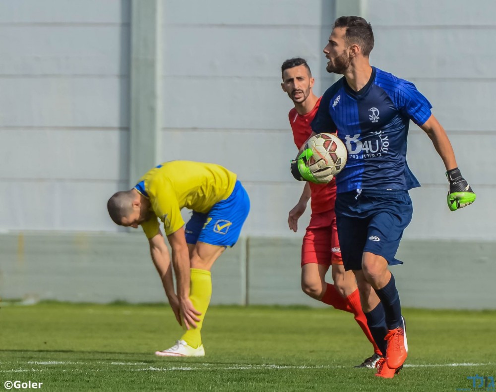 איתי כהן עוצר את חלוצי יבנה למרות שספג שני שערים. (מני בן ארי).