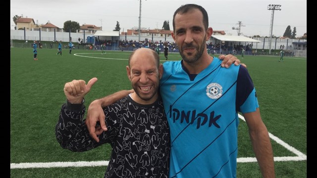 משה עמר חוגג את הצמד עם איש המשק של הקבוצה שמעון שקורי (מ.כ אור יהודה)