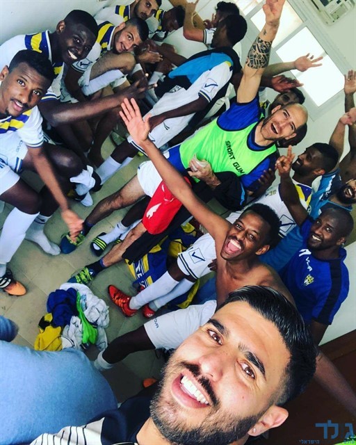 שחקני אשדוד חוגגים בסיום (מוטי קדוש)