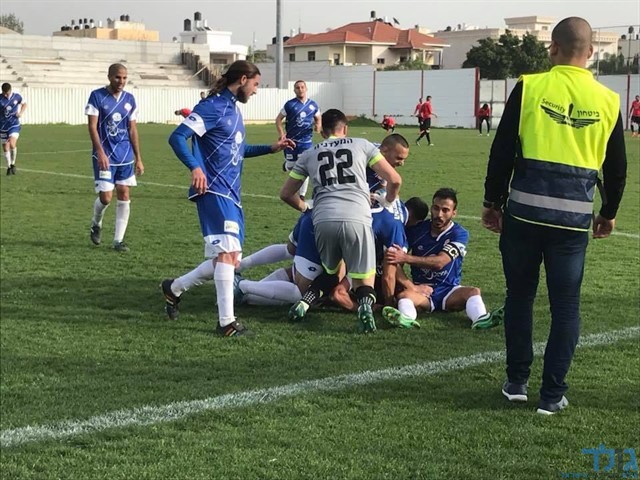 שחקני טייבה חוגגים עם קובי דומר את שער הניצחון