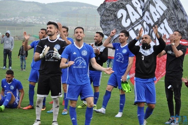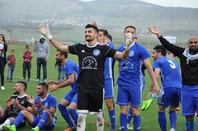 שחקני איכסל חוגגים ניצחון ענק מול כפר כנא (חגאג רחאל)