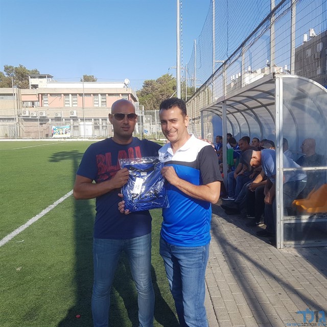 אוהד רון מעניק לשי כהן מאמנה של בית"ר ר"ג את מתנת המותג "RUN"