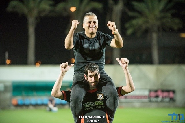 תמונה שאומרת כל כך הרבה על נס ציונה, עופר טסלפפה מונף על כתפיו של יוסי אסייג (אלעד ירקון)