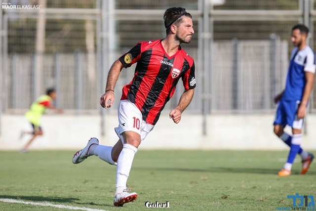 בראא קאסם מכפר קאסם עם שער הניצחון החשוב. יוביל את כפר קאסם לפלייאוף? צילום: גיא צמח.