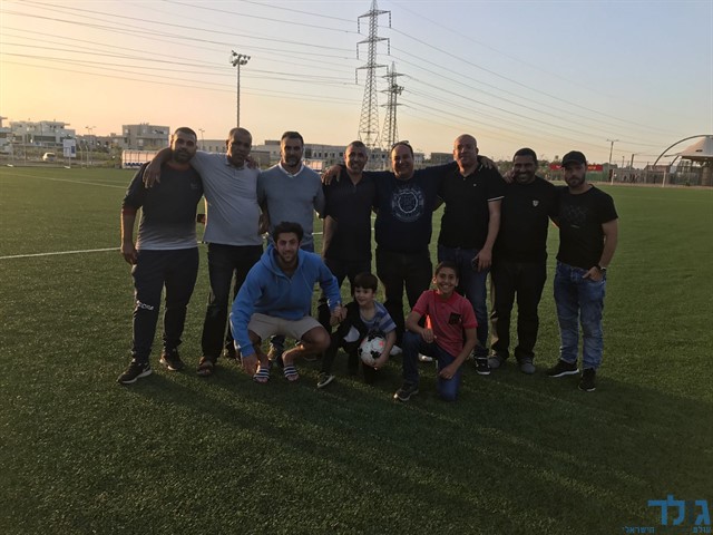 מאמון עאמר שלישי משמאל עם האנשים החזקים בטייבה חוגגים פלייאוף