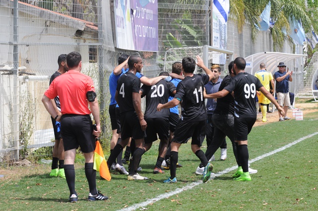 שחקני נחלת יהודה חוגגים הישארות בליגה! (איתן ידגר)