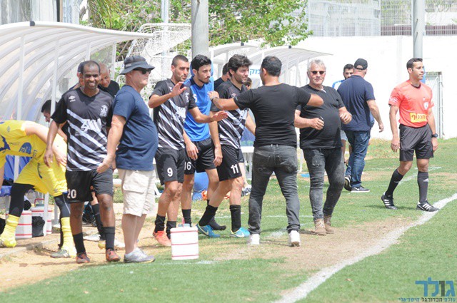 חגיגה על הספסל של נחלה בסיום המשחק. צילום: איתן ידגר.