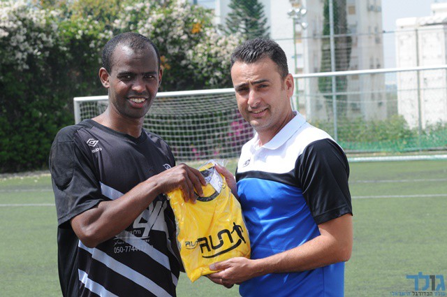 מצטיין המשחק מוחמד שרבוש מקבל פרסם מתנת המותג RUN- מותג הספורט של הכדורגל. צילום: איתן ידגר.