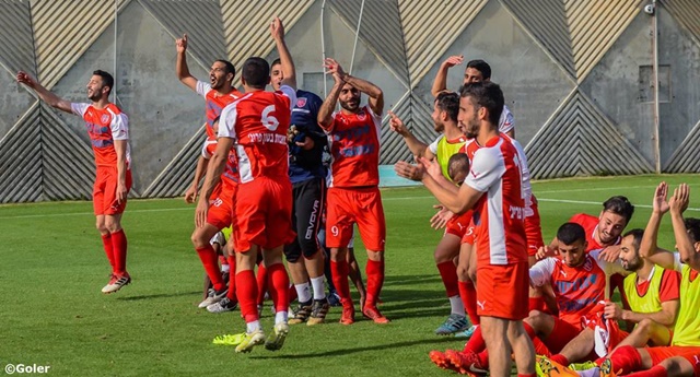 שחקני כפר קאסם חוגגים ניצחון ענק בנס ציונה (מני בן ארי)