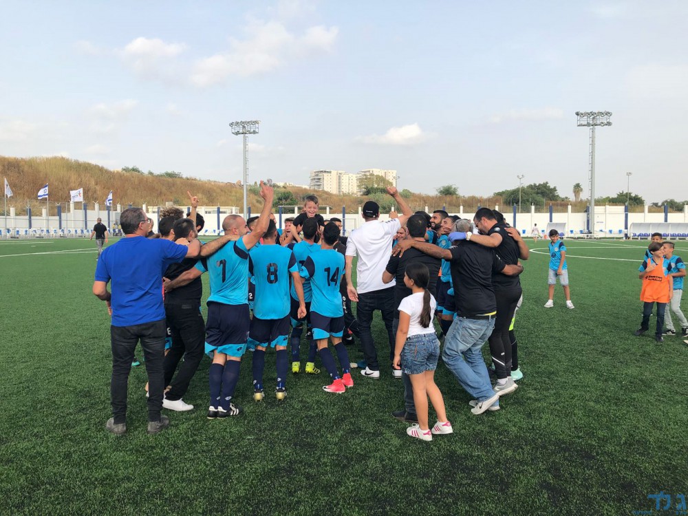 שחקני אור יהודה חוגגים בסיום (אבייתר ברק)
