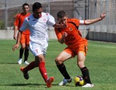 אמיר עגיוב(בכתום) מחפש עם רוביק זזיאן מהפועל את הכדור.(צילום:אמיר דבי)