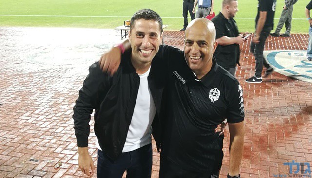 גל ברשאן במשחק האחרון של מחנה יהודה העונה יחד עם מנכל מחנה יהודה, שלומי דוד.