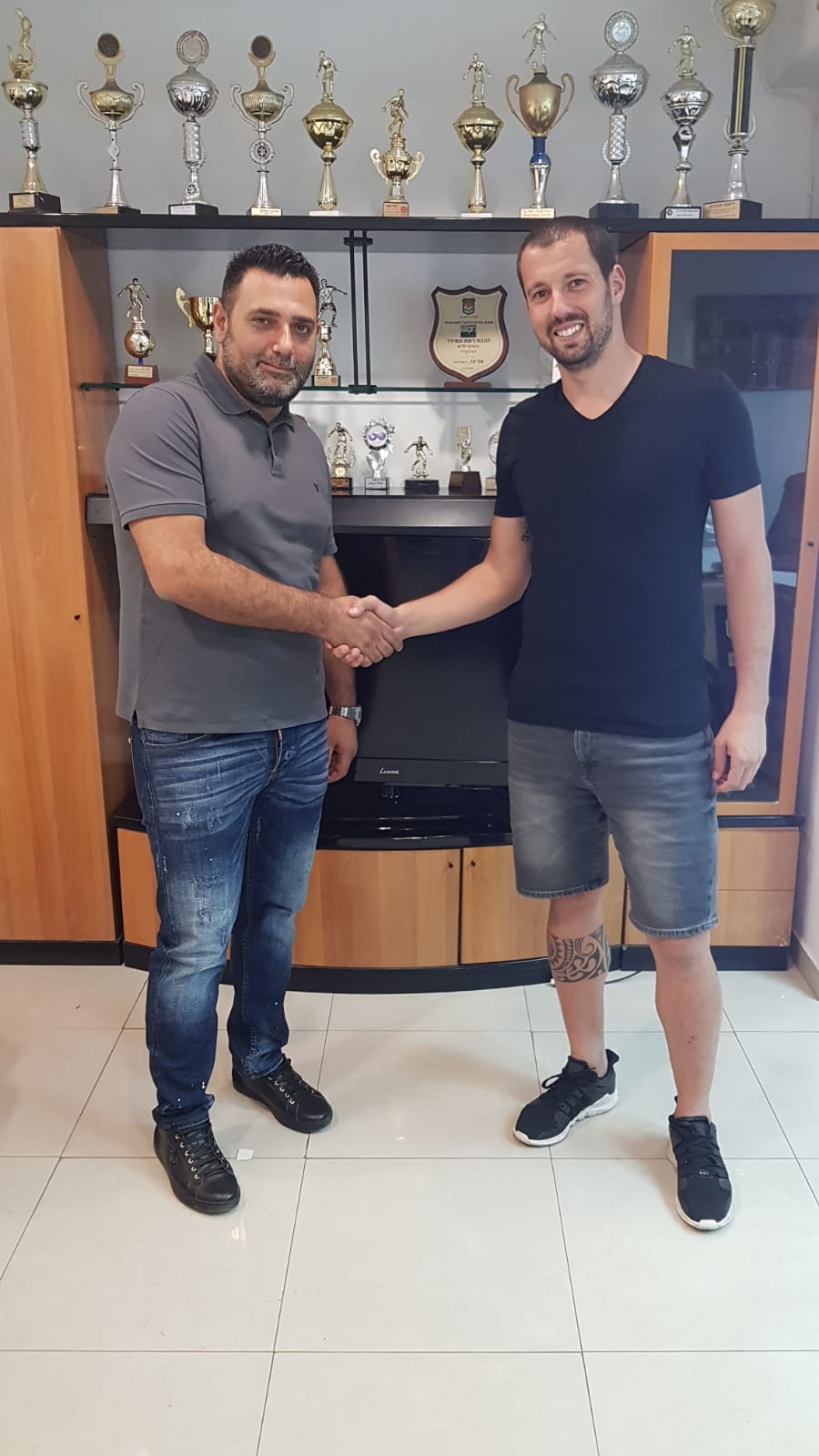 עומר פרץ ואיציק זוויגי לאחר שחתם בהכח ר״ג