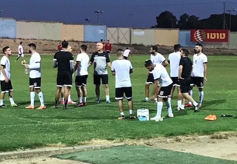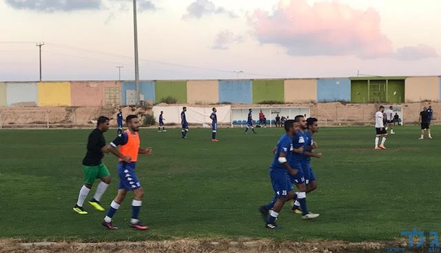 שחקני עירוני כסייפה מתחממים במגרש בדימונה