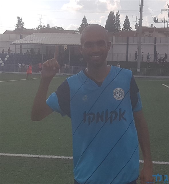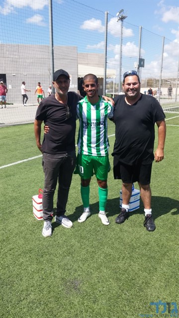 נאור לוי קפטן שמשון ת"א כובש צמד שערים בתמונה עם אביו יפתח הלוי והאוהד המסור ליאור טרי (ליאור טרי)