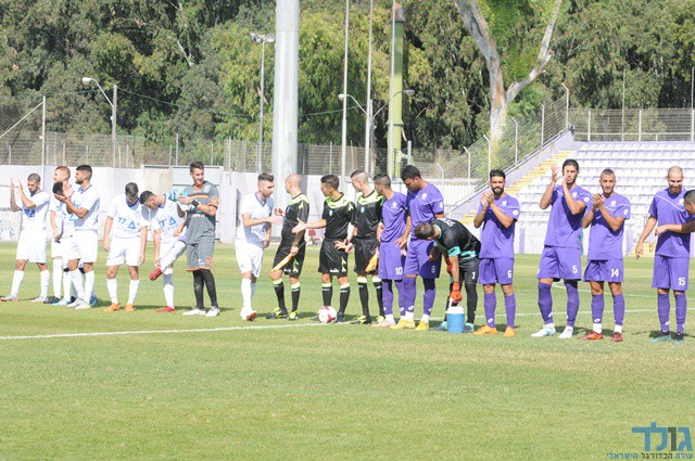 שחקני שתי הקבוצות לפני פתיחת המשחק (איתן ידגר)