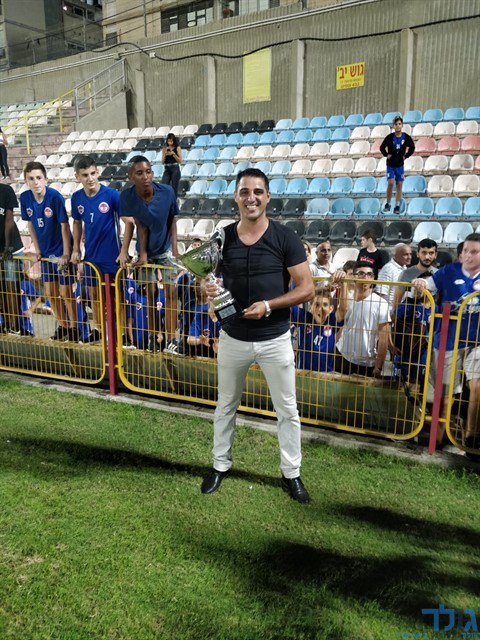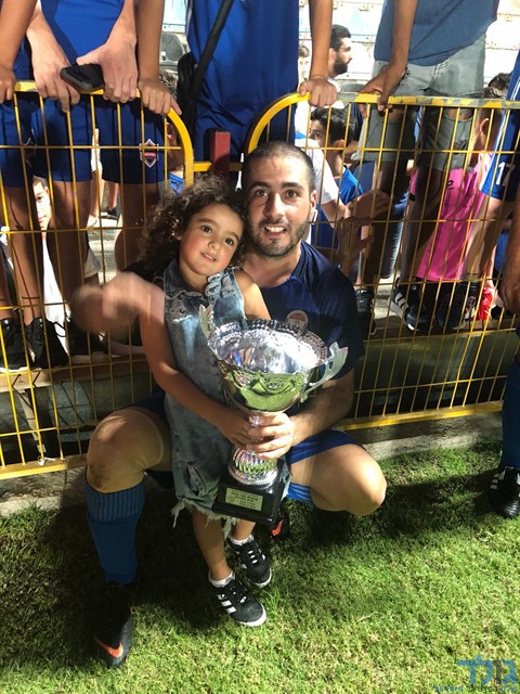 ליאור סויסה המצטיין במשחק חוגג עם הגביע.