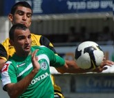 טאלב טואטחה(בירוק)ומוחמד עקל מנתניה לא מוותרים על הכדור.(צילום:אלי ראול)