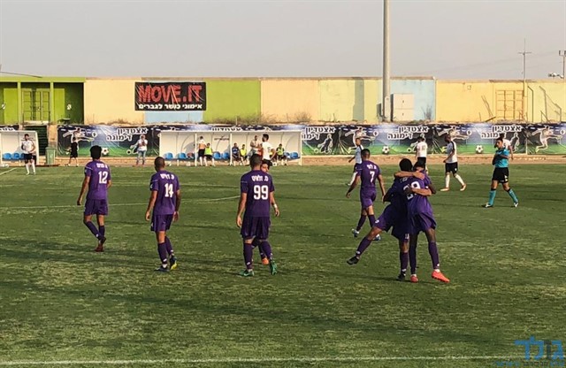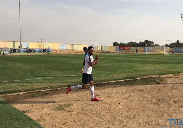 משה אסולין רץ לחגוג את השער מול הקהל של מ.ס דימונה.