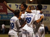 פריג' חוגג עם עידן דוד ובן אבו את השער.(צילום:לירן דורף)