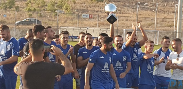 שחקני מ.ס דימונה חוגגים את הזכייה בגביע המחוז (צילום:אוהדי מ.ס דימונה)