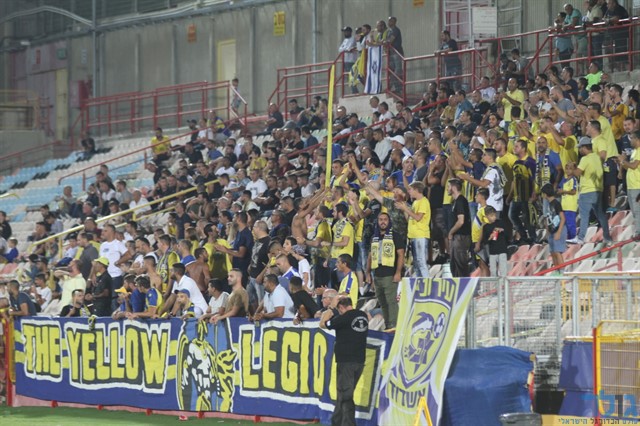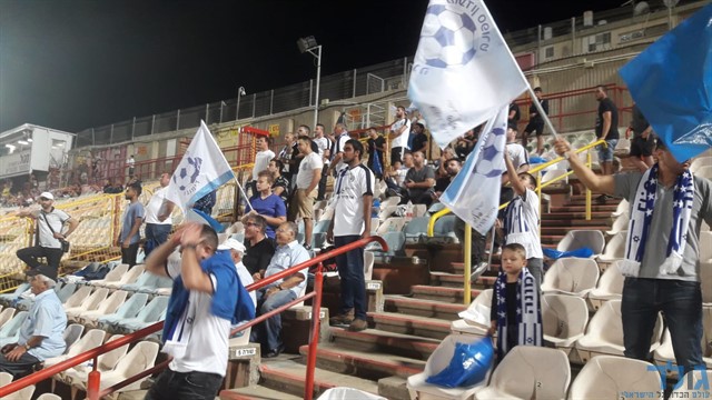אוהדי עירוני אשדוד ממלאים את היציע. (צילום:מוטי קדוש)