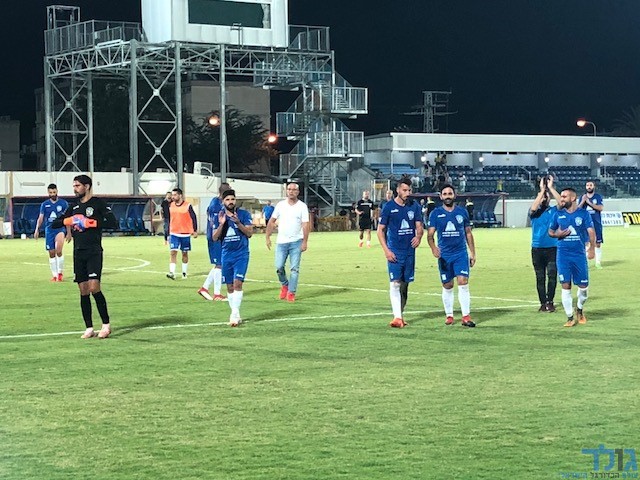 מוטי דהאן ושחקני מ.ס דימונה בסיום המשחק. (צילום:לירן ביטון)