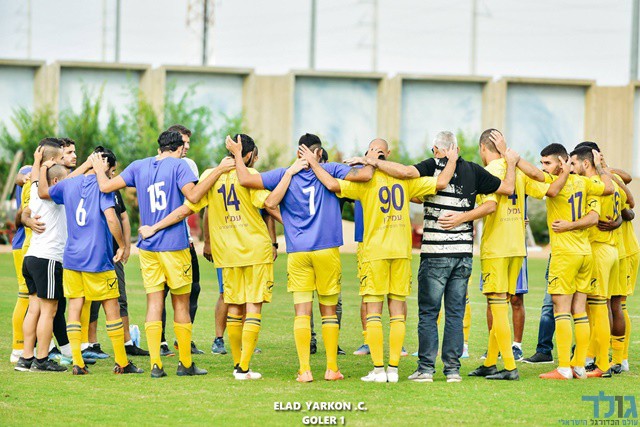 שחקני חולון חוגגים ניצחון יקר מול כפר קאסם (אלעד ירקון)