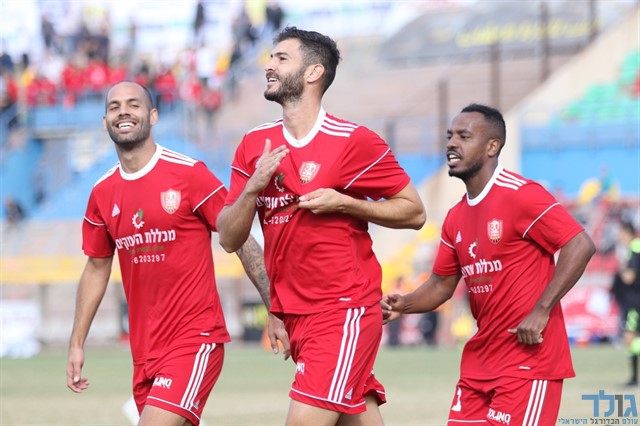 שחקני אדומים אשדוד חוגגים מול בקעת הירדן (אבישי אפטקר)