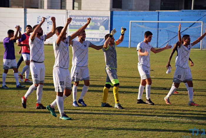 שחקני הכח חוגגים ניצחון מרשים על כפר שלם. צילום: גיא צמח.