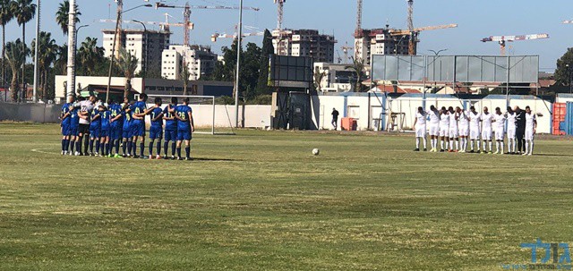 שחקני שתי הקבוצות לפני פתיחת המשחק (אבייתר ברק)