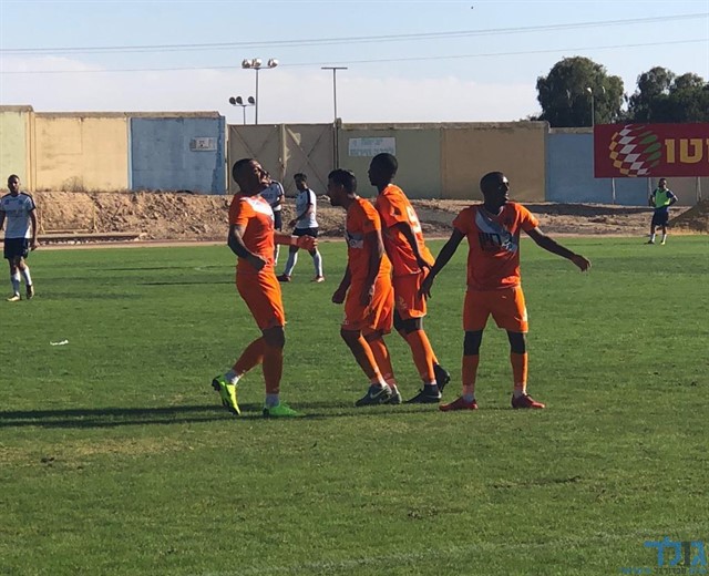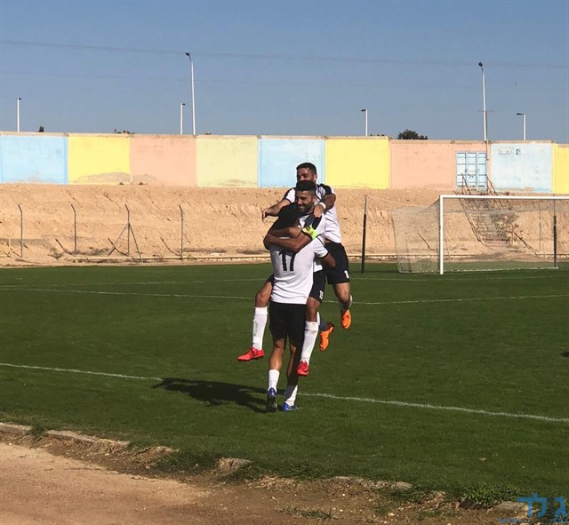 דימונה עולה ליתרון , ושחקני הקבוצה חוגגים את השער של דודו כהן