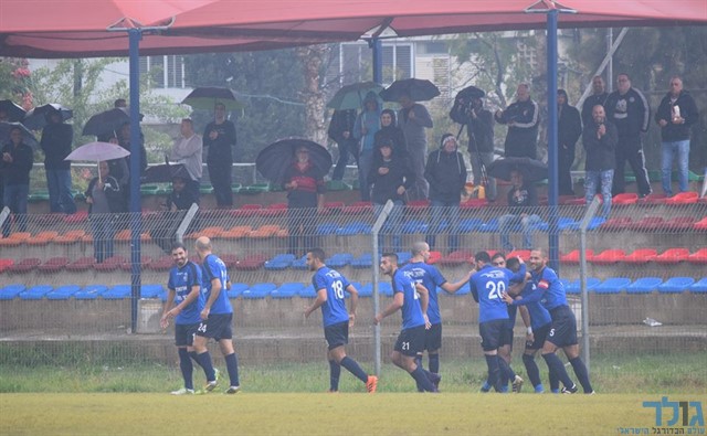 שחקני אזור חוגגגים עם גל בן דיין את השער המהיר (דני מלניצקי)