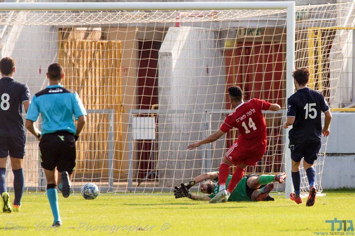 דור מלכה, כובש שער הניצחון. כבר במשחקו השני פורע שטרות. צילום: חגאג רחאל.