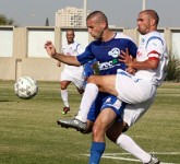 ישראל זויטי עם העיניים על הכדור,ליעד ברקוביץ' הלך לנמנם קלות.(צילום:לירן דורף)