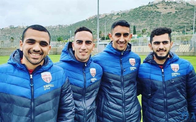 יכולים לחייך - שחקני רובי חיפה איימן חמזה, מישל חליל, אמיר נפאע ודודו אדרי (אתר פייסבוק הפועל רובי שפירא חיפה)