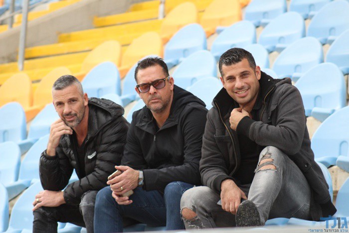 מאמן רובי חיפה,אלעד בראון יחד עם סוכן העל אורן דניאל ומאיר כהן השוער הוותיק שפרש לאחרונה. צילום: רחאל חגאג.