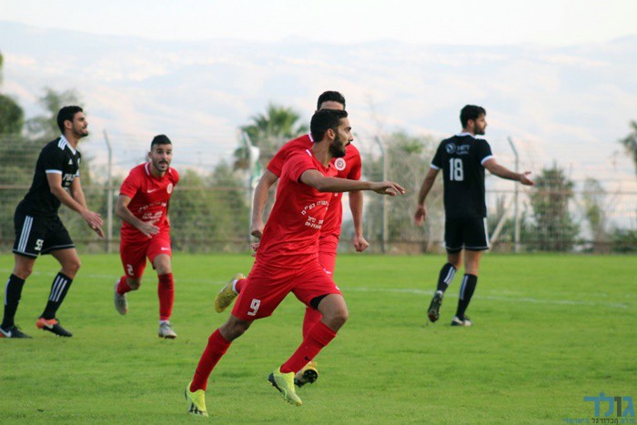 שחקני אסי גלבוע חוגגים ניצחון ראשון העונה על מ.ס. טירה. צילום: חגאג רחאל.