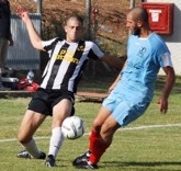 איתמר בן דוד(בשחור)ואיציק בוחבוט מנחלת מחפשים כדור.(צילום:אמיר דבי)