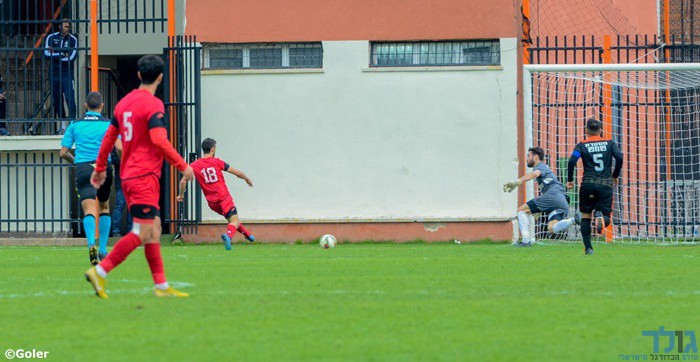 אוהד אדלשטיין כובש השער לזכות כפר קאסם. צילום: מני בן ארי.
