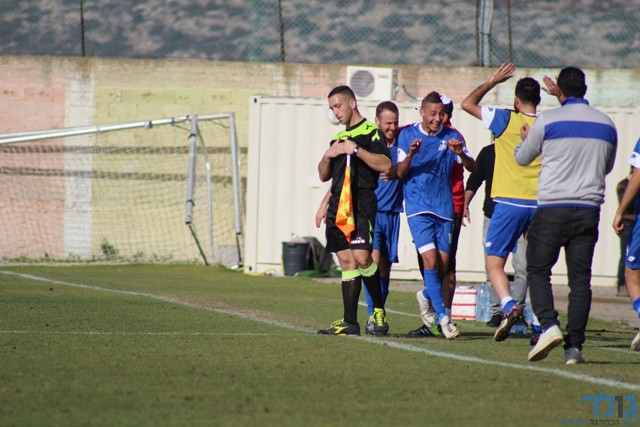 מחמוד פודי מעלה את כפר כנא ליתרון וחוגג עם ספסל הקבוצה (חגאג רחאל)